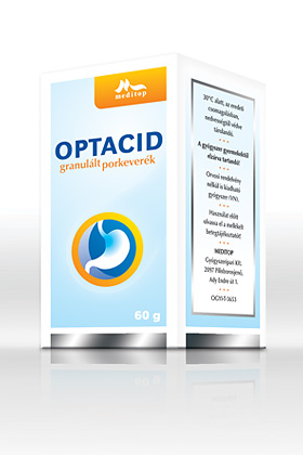 OptacidTúlhajszolt, stresszes életmód – felborul a gyomornedv vegyhatása – Optacid pufferhatása helyreállítja a pH értéket mind a savas mind savhiányos állapotban. A helyreállított optimális pH környezetet biztosít pepszin emésztőenzim működéséhez, és az emésztés is javul.Az Optacid hatóanyaga nátrium-dihidrogén-foszfát-dihidrát és a nátrium-hidrogén-szulfát. Az Optacid granulátum az alábbi állapotok tüneti kezelésére használható: a gyomornedv kórosan változó mértékű savassága, savhiányos állapotok, savtúltengés, rendszertelen étkezés okozta gyomorpanaszok, savhiány miatti emésztési problémák (hasmenés), gyomornedv-elválasztás zavarain alapuló bőrtünetek, gyomor- és nyombélfekély. A Optacid granulált porkeverék vízben történő feloldását követően a gyógyszerben lévő két szervetlen só, nátrium-dihidrogén-foszfát-dihidrát és a nátrium-hidrogén-szulfát ún. pufferoldatot képez, amely képes mind az optimálisnál savasabb, mind pedig az optimálisnál lúgosabb kémhatású (pH-jú) gyomornedv savasságának élettanilag normális tartományba történő beállítására. Ezért az Optacid egyaránt alkalmas a savtúltermelődéses és a savhiányos állapotok tüneti kezelésére. Az Optacid által a gyomorban biztosított 2,7 körüli pH-érték lehetővé teszi az ott termelődő pepszin emésztőenzim megfelelő működését, amelynek fehérje-emésztési optimuma pH 2 körül van. Az Optacid alkalmazása esetében nem áll fenn a gyomornedv kémhatása túlságosan lúgos irányba tolódásának kockázata, amely csökkentené az emésztés hatékonyságát. Az Optacid granulált porkeverékben lévő nátrium-hidrogén-karbonát (szódabikarbóna) és citromsav a vizes oldatban egymással reagálva széndioxid gázképződés révén pezsgőhatást biztosít, amelynek következtében a granulátum szemcsék gyorsabban oldódnak.